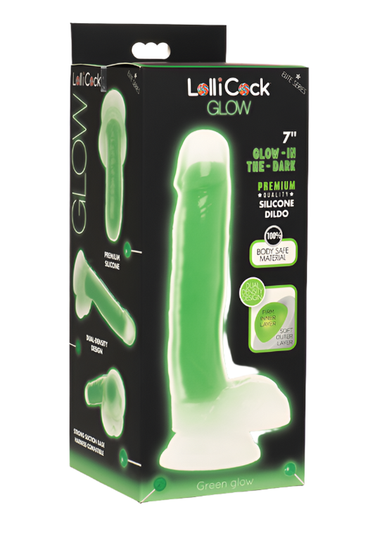 Lollicock 7" Glow-In-The-Dark Silicone Dildo With Balls