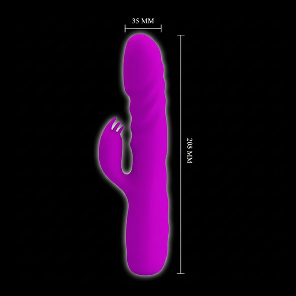 Indulge in the authentic penetrative experience and beyond with the PARTY UP 4 Function Thrusting Rabbit Vibrator! This bountiful bunny blends the iconic dual stimulation of the rabbit vibrator with G-spot activation and clitoral tickles. Squeeze the push-button to customize your stimulation with 4 incredible rotating and thrusting patterns to choose from. While you experience internal pleasure form the shaft, the attached bunny ears concentrate on your clitoris and deliver spectacular stimulation once the multi function vibrator is engaged. When it's running low, simply plug the USB charging cable into your vibrator for the next time you need sweet relief.