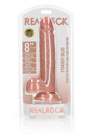 RealRock is designed to let you enjoy yourself to the fullest. A firm and soft-to-touch dildo, natural looking and just the right size. In combination with the realistic veins on the shaft, giving extra stimulation on the inside. This realistic dildo is perfectly straight for deep penetration. The scrotum and shapely glans are the details that make using this dildo so lifelike. For best results use water-based lubricant and cleanse with toy cleaner before and after use.
